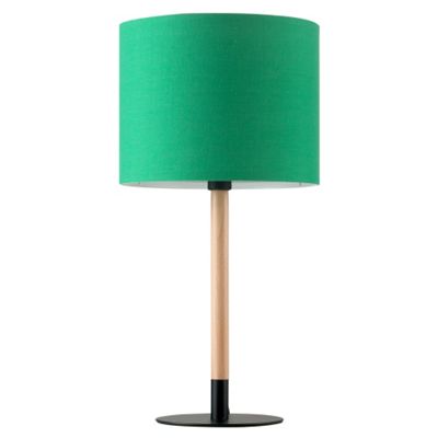 This splendid accent lamp tastefully merges a traditional wooden base with a modern shade.
